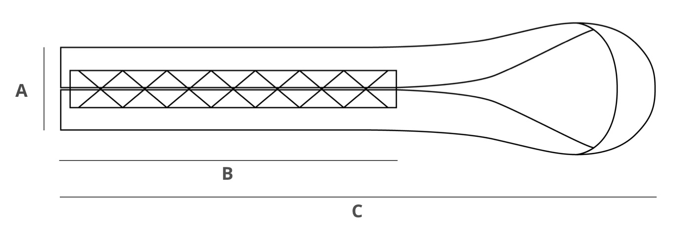 Consejos de tallaTalla únicaA - 5 cm - 1.97" | B - 15 cm - 5.9" | C - 33 cm - 12.99" |