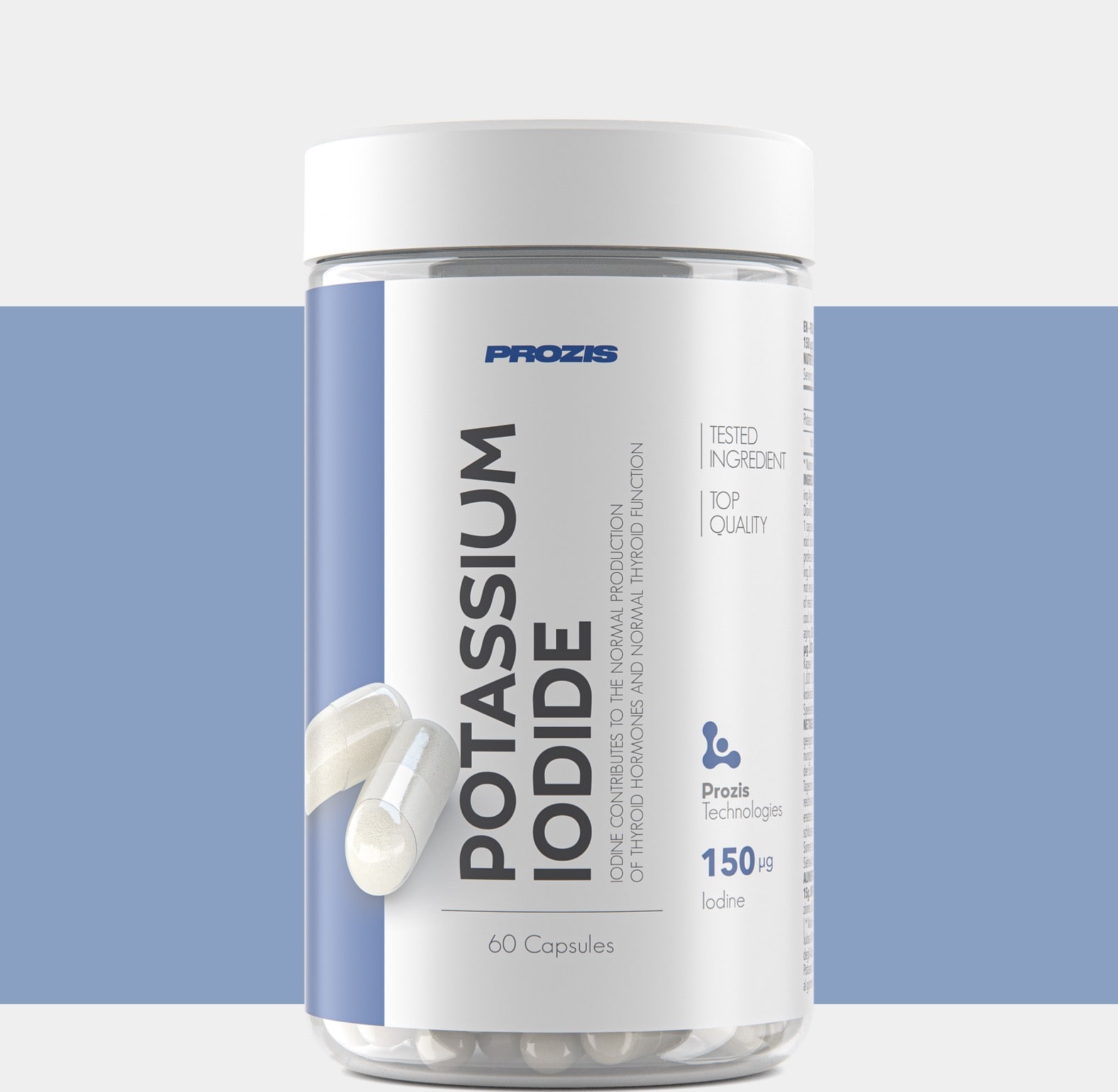 Lab TestedSoumis à des tests rigoureux dans des laboratoires de pointe, ce produit répond aux normes les plus strictes en matière de qualité et de sécurité. Pour quoi ?Prozis a créé l'Iodure de Potassium pour fournir une source d'iode de qualité supérieure à tous ceux qui souhaitent compléter leur alimentation équilibrée par les bienfaits de ce composé. Prozis t'offre un complément fiable et un moyen pratique de le prendre. Pour qui ?L'Iodure de Potassium de Prozis a été développé pour fournir à toutes les personnes actives une source fiable d'iode. Ainsi, tu peux compléter ton alimentation équilibrée avec les propriétés de ce composé, disponible dans des gélules pratiques. POINTS FORTS DE IODURE DE POTASSIUM DE PROZIS :