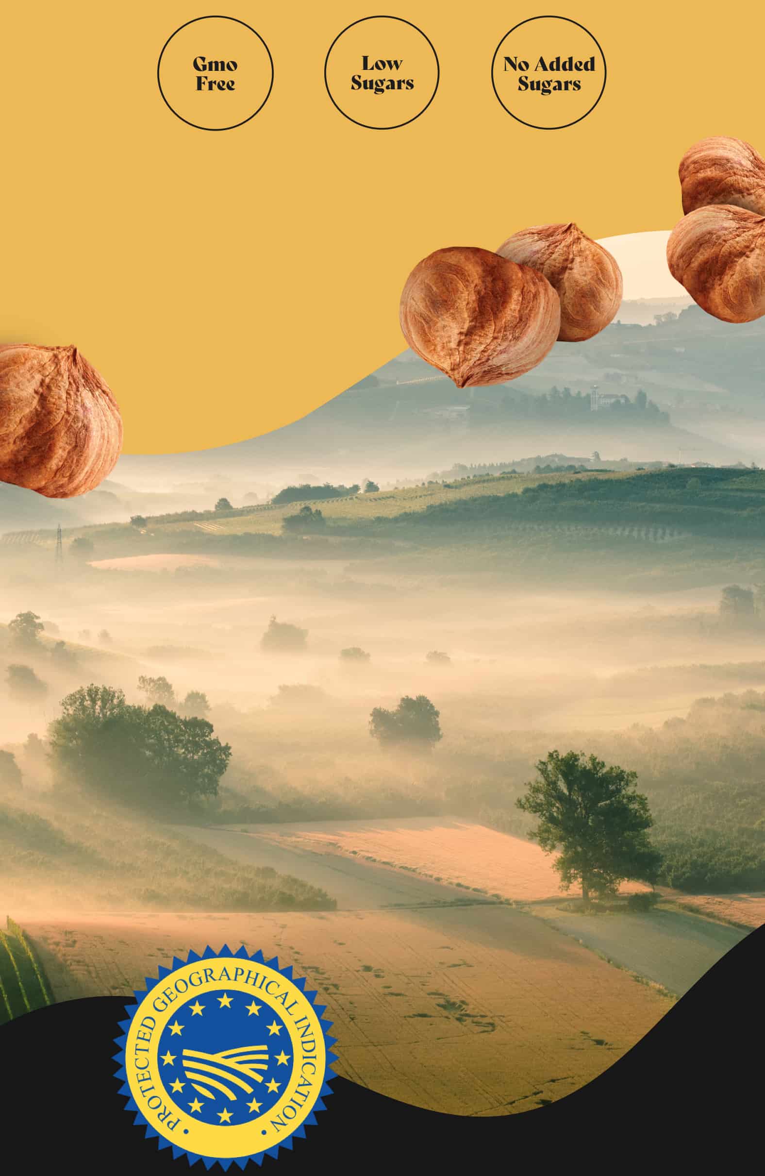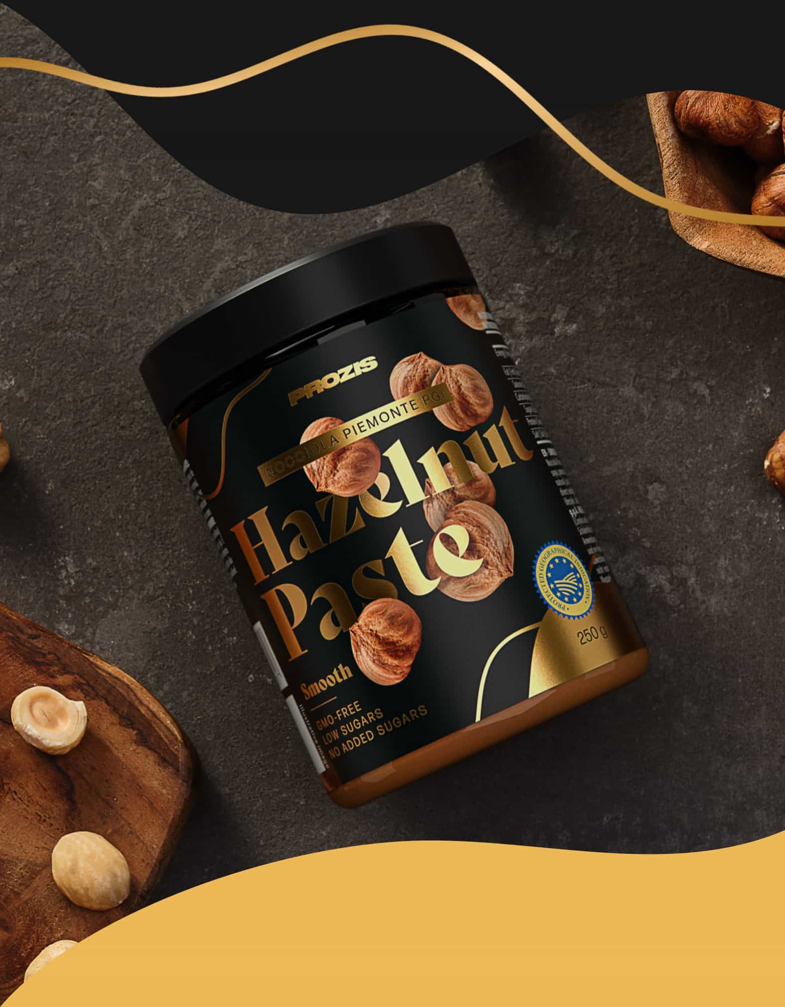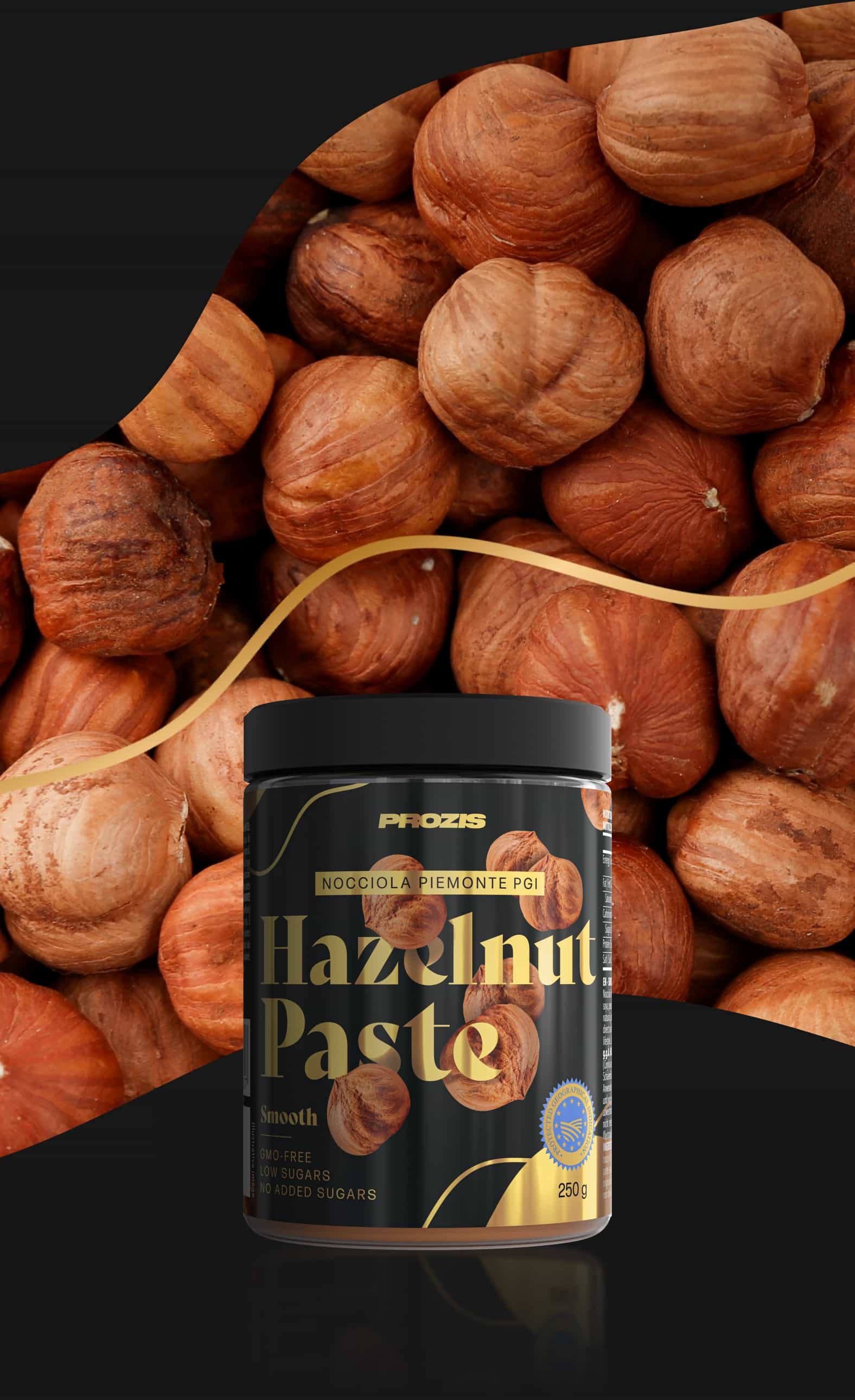 ΠΡΩΤΗΣ ΠΟΙΟΤΗΤΑΣ ΠΡΟΕΛΕΥΣΗΑυτή η πάστα είναι φτιαγμένη με υψηλής ποιότητας ξηρούς καρπούς—Φουντούκια Nocciola Piemonte PGI. Η προστατευόμενη γεωγραφική ένδειξή τους βρίσκεται στο βόρειο τμήμα της Ιταλίας, αλλά αυτά τα φουντούκια χρησιμοποιούνται σε όλη την ιταλική κουζίνα. Είναι γνωστά για το σκληρό κέλυφος, τη μοναδική γεύση και το εξαιρετικό άρωμα, που τα καθιστούν ιδανικά για χρήση σε αλοιφή, δίνοντας σε όλα τα φαγητά σου μια καταπληκτική γαστρονομική γεύση.