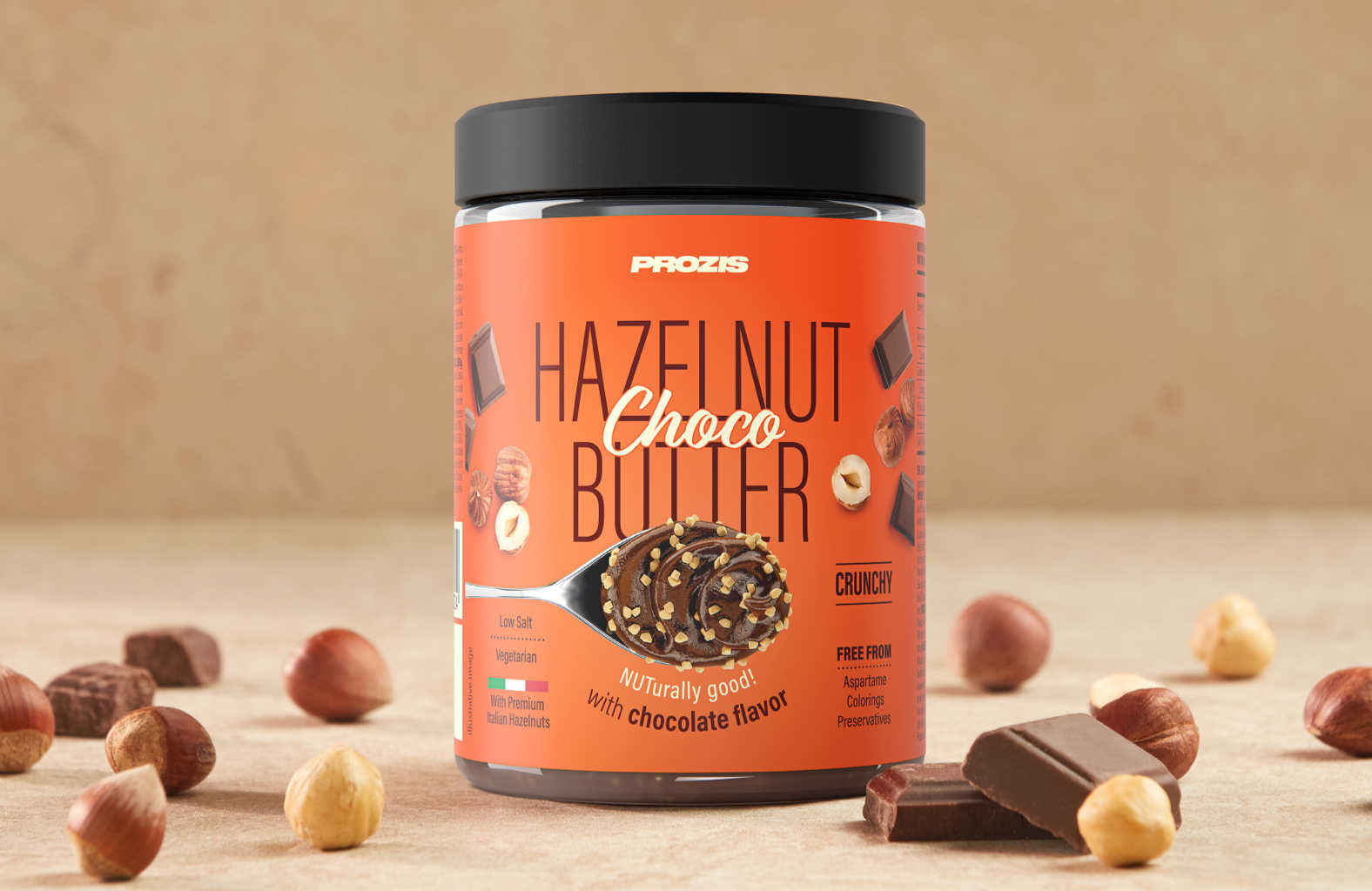 Espalha a felicidadeA vida não tem de ser cinzenta quando pode ser castanha! Espalha felicidade sobre as tuas tostas, panquecas e waffles com o Creme de Avelã e Chocolate da Prozis. Um creme suave e crocante, com baixo teor de sal e com sabor a chocolate que irá derreter o teu coração e derreter-se na tua boca. Espalha as boas vibrações e partilha este creme com os teus amigos e família.