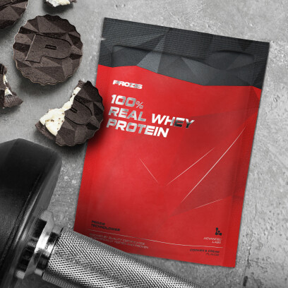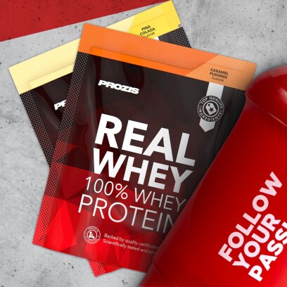 Eis a proteína whey da mais alta qualidade para verdadeiros ganhos musculares! A proteína whey é um suplemento que dispensa apresentações. Conhecida pelo seu imbatível perfil nutricional, a proteína whey é um valioso recurso para pessoas ativas. Quando proveniente da fonte de melhor qualidade disponível, um bom produto à base de proteína whey dá-te o que precisas para alcançares todos os objetivos de construção muscular. Com base nessa experiência, a nossa equipa de nutricionistas e engenheiros alimentares optou por manter as coisas simples e verdadeiras, tal como no lema "Keep it simple. Keep it real.", e inventou o derradeiro suplemento de proteína whey: o 100% Real Whey Protein ![]() A mais alta qualidade. Sem truques. Sem ingredientes ocultos.O 100% Real Whey Protein da Prozis apresenta um concentrado de proteína whey de qualidade superior, numa fórmula altamente concentrada com um teor de proteína superior a 80%*. Esta proteína pura, de alto valor biológico, contém um perfil de aminoácidos completo, com BCAAs, que te vai ajudar a aumentar a tua massa muscular, assim como a manter o músculo que tanto te custou a ganhar. Garantida por certificados de qualidade emitidos por laboratórios de testes independentes, a composição do 100% Real Whey Protein não te esconde segredos. Com este suplemento, o que lês no rótulo é aquilo que tens no teu batido. Além disso, graças aos processos tecnologicamente avançados aplicados na sua produção, este suplemento em pó foi instantaneizado para uma dissolução rápida e fácil, oferecendo-te um batido cremoso e sem grumos. ![]() A melhor relação qualidade/preço. Garantidamente.A Prozis produz este suplemento superior de proteína whey, utilizando processos de fabrico otimizados, e fornece-to diretamente, sem recorrer a intermediários. Desta forma, obténs a mais alta qualidade, ao preço mais competitivo do mercado. Garantidamente. Não te limites a acreditar no que dizemos. DADOS NUTRICIONAIS VERIFICADOS EM LABORATÓRIO![]() Este produto foi testado por um laboratório independente, garantindo os padrões de pureza e todas as suas propriedades inerentes e qualidade. O certificado de qualidade pode ser consultado na secção "Informação Nutricional" desta página. Tantas opções saborosas.Reunimos os melhores especialistas para elevar todos os sabores a todo um outro nível e poderes apreciar verdadeiramente cada gole do teu batido!