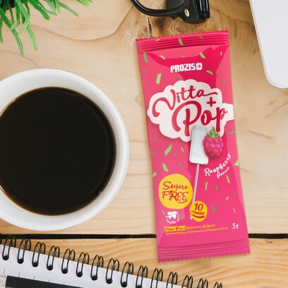 O Vitta+Pop da Prozis foi desenvolvido para oferecer todas as vantagens de um chupa-chupa normal, mas nenhuma das desvantagens. Demasiado açúcar? O Vitta+Pop não contém açúcares! Mau para os